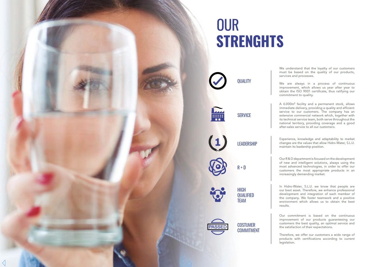 Water treatment equipment, which divides its activity in three different areas: Residential Division, Industrial